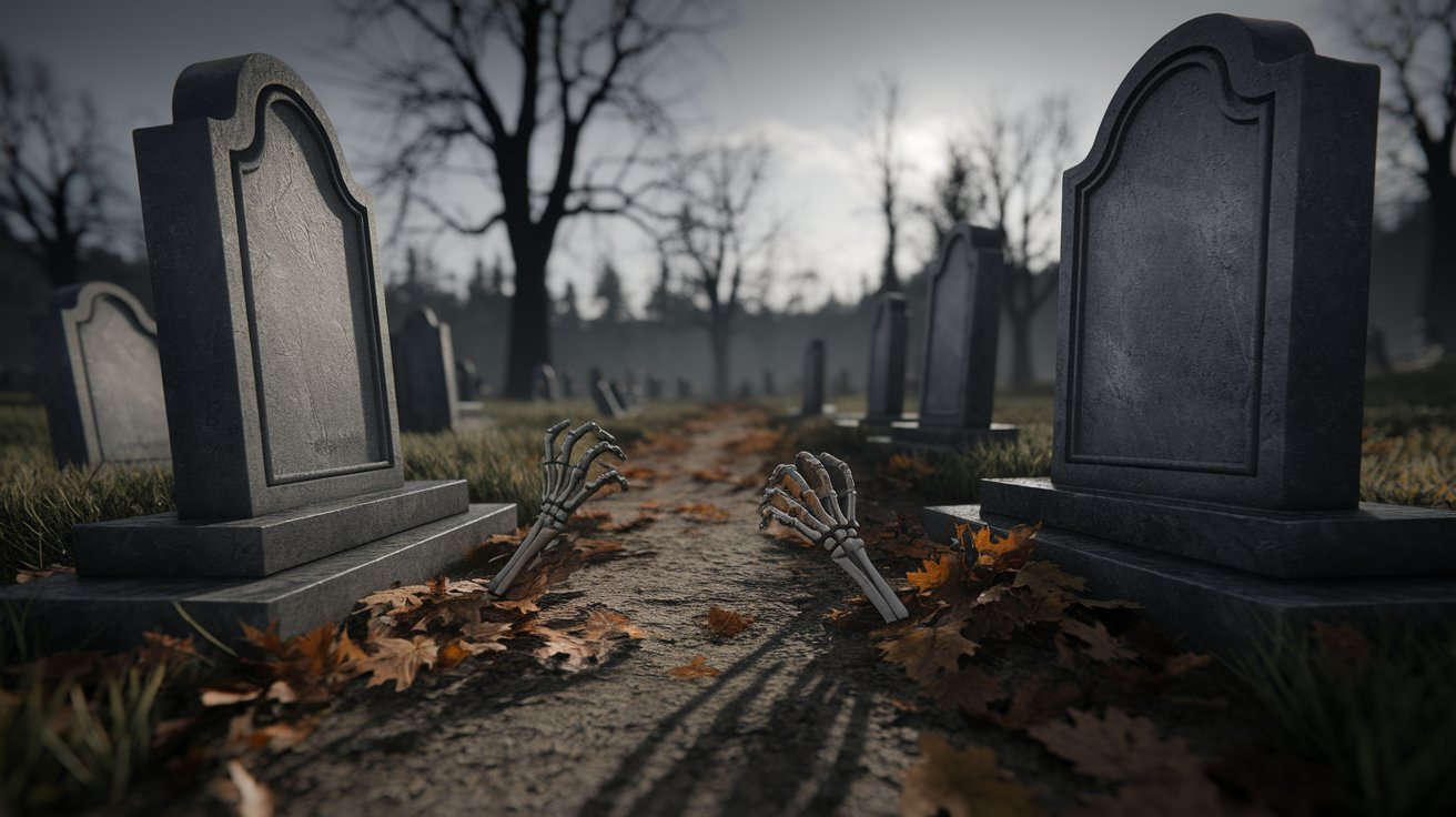 Key items: Tombstones, skeletons, fog machine, dead branches
